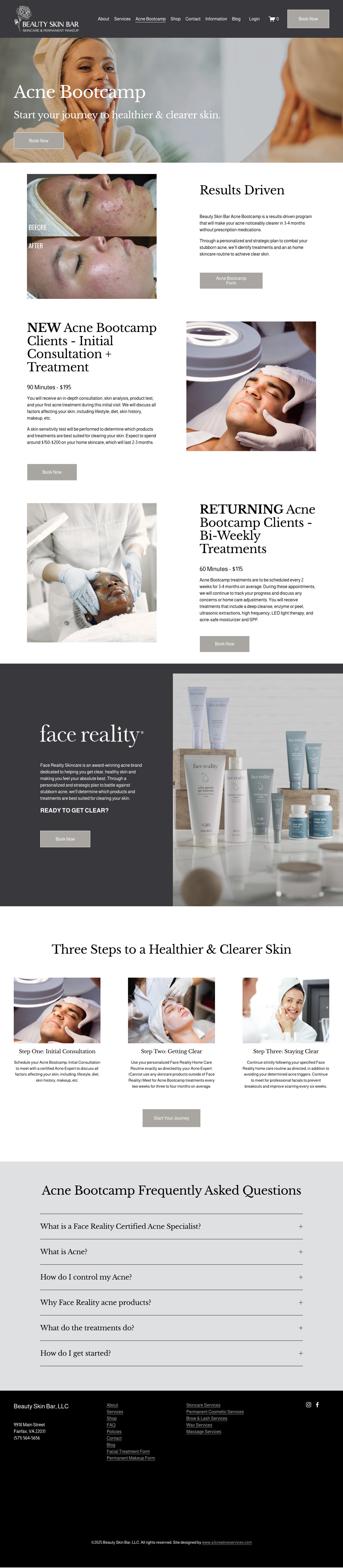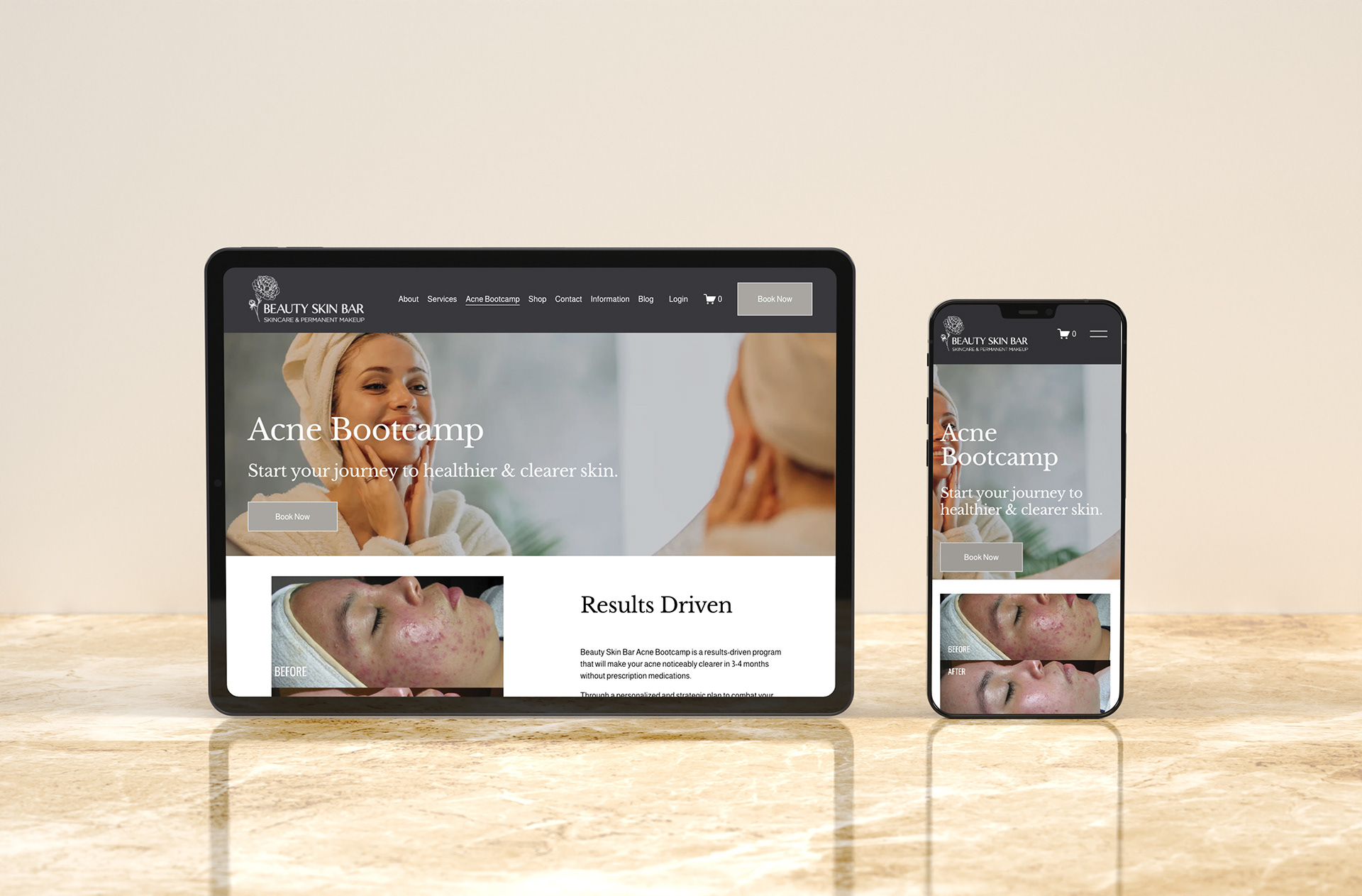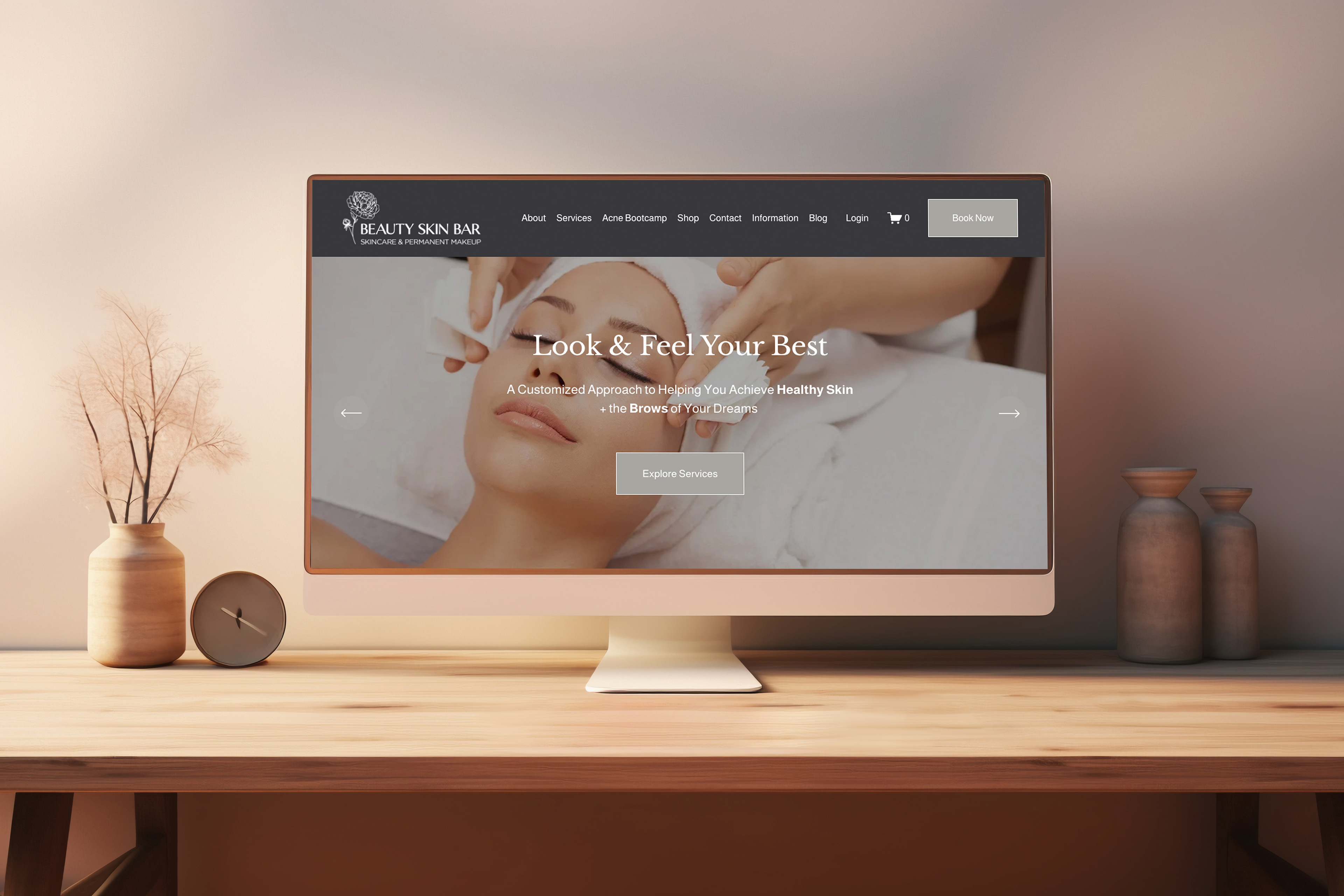 This website design project focused on creating a digital experience that reflects the brand’s clean, confident approach to skincare while making it easy for clients to explore services, build trust, and book with confidence. The design balances editorial visuals with clear structure—highlighting expertise, simplifying decision-making, and guiding users seamlessly from discovery to booking.